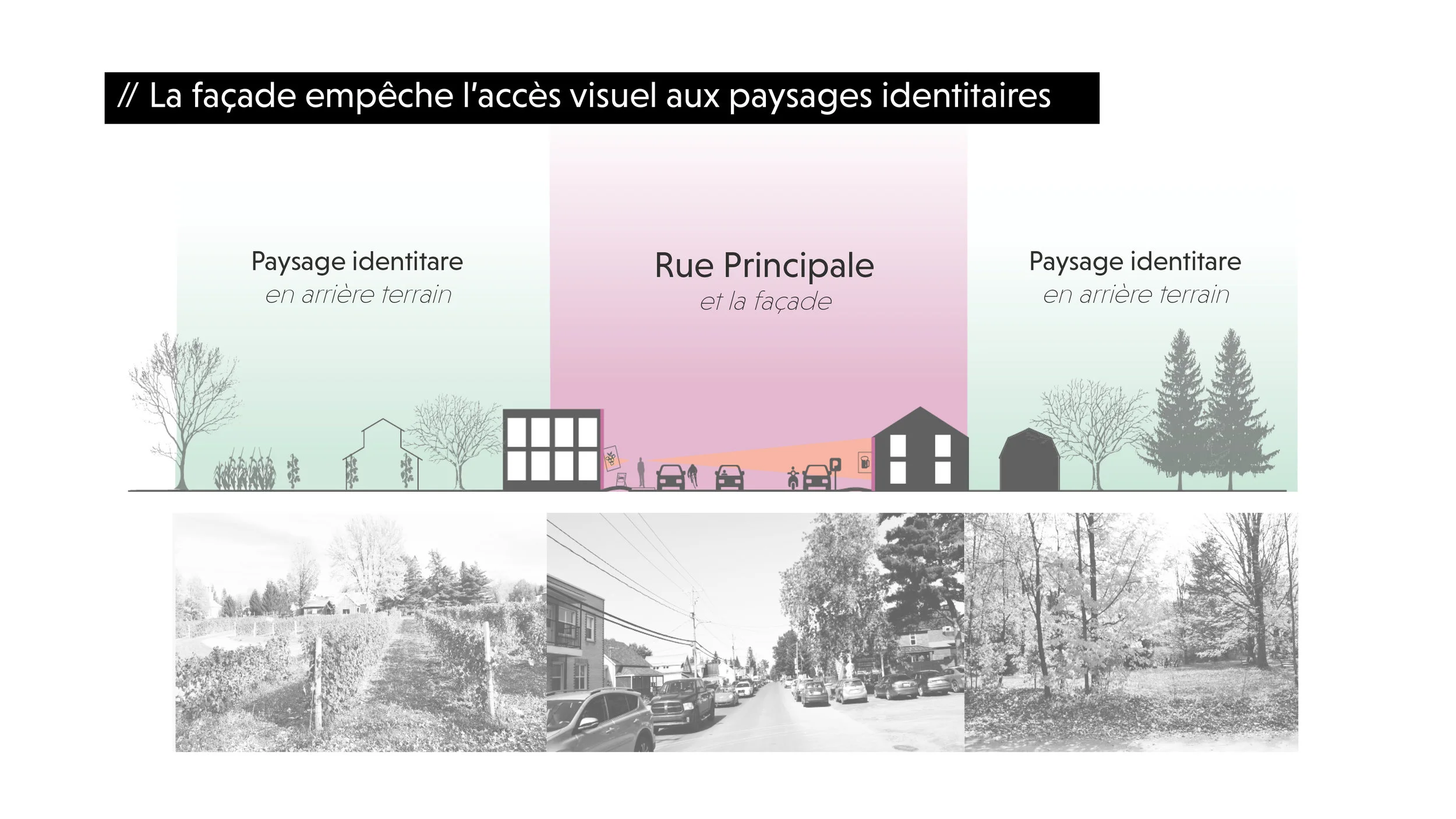 Située au cœur du noyau villageois, la route 202 revête plusieurs caractères changeants, au fur et à mesure que l’on s’y déplace. Elle est à la fois un lieu de passage, de pause et de festivités, lui permettant une variété de vocation. D’une rue urbaine à une route régionale.